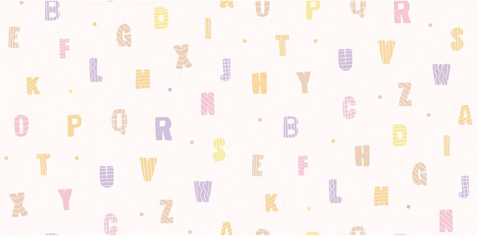 Playful alphabet kids standard wallpaper with pastel letters — perfect for nursery, playroom, or study wall decor.