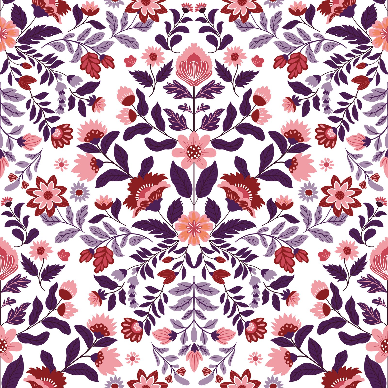Floral wallpaper with pink, purple, and red flowers, bold blossom patterns, botanical designs, and colorful nature‑inspired wall art.