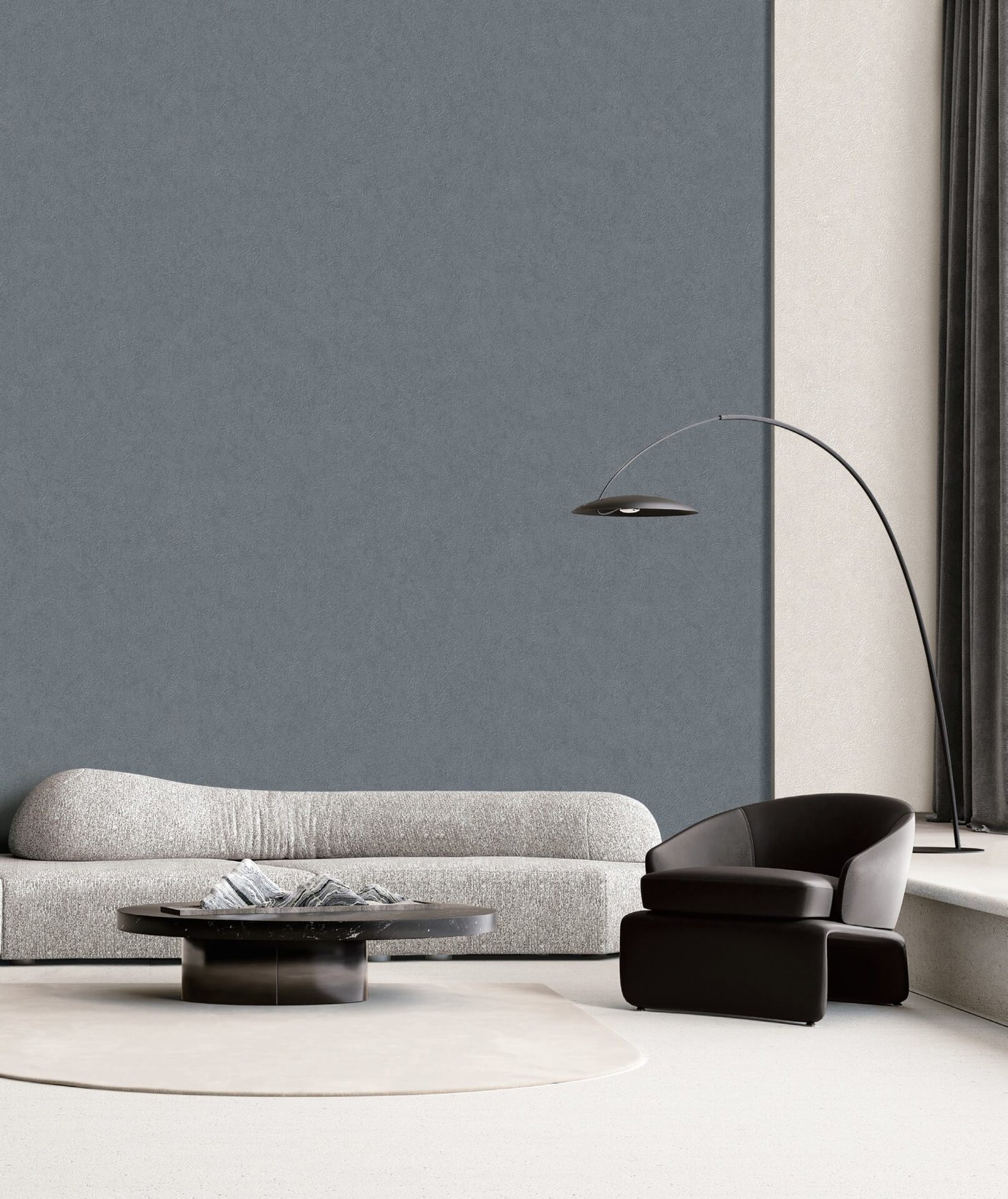 Modern blue textured plaster wallpaper for living room and bedroom walls with minimalist luxury wall decor design.